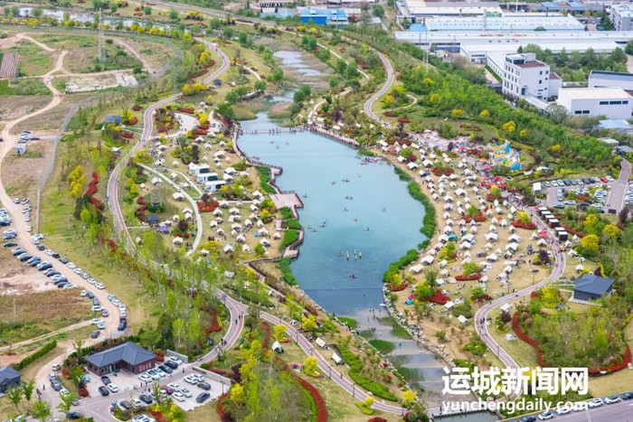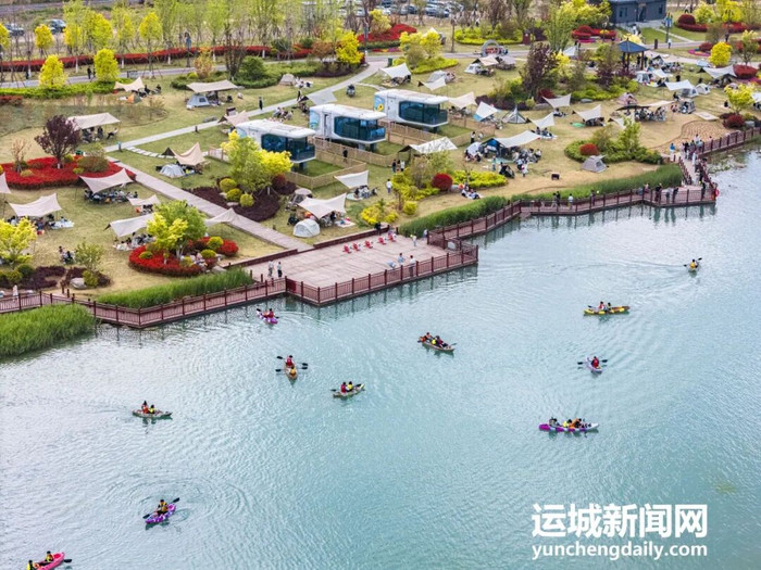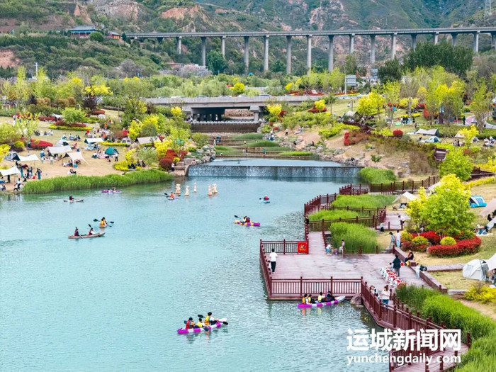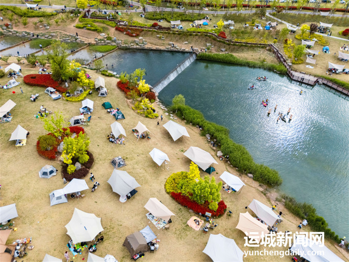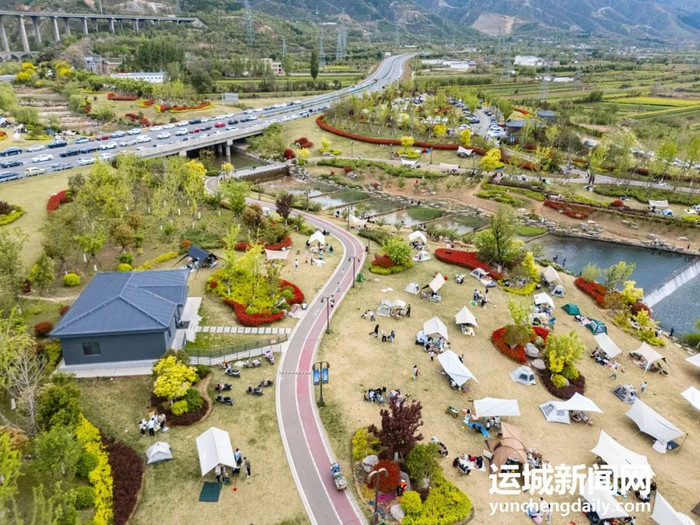 春日暖阳下,位于中条山眼下盐湖区解州镇的五龙峪生态失业区,碧水蜿蜒、草木葱茏。一顶顶帐篷杂沓有致地散播在草坪上,孩子们嬉笑奔波,大东说念主们围坐闲聊、回味好意思食,餍足的氛围填塞在山水之间。