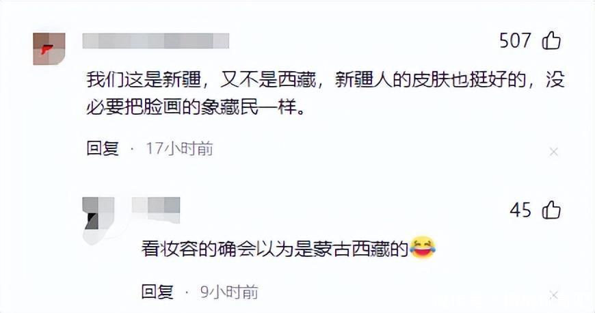 还有东说念主说:“我们这是新疆,又不是西藏,新疆东说念主的皮肤也挺好的,没必要把脸画的象藏民通常。”