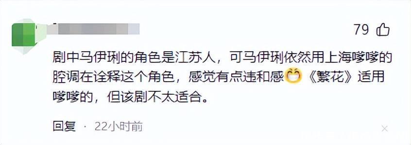 除了马伊琍的妆容,还有东说念主吐槽她的口音,说马伊琍这个脚色满口的上海腔,让东说念主看了就以为是在演,代入感太差了。