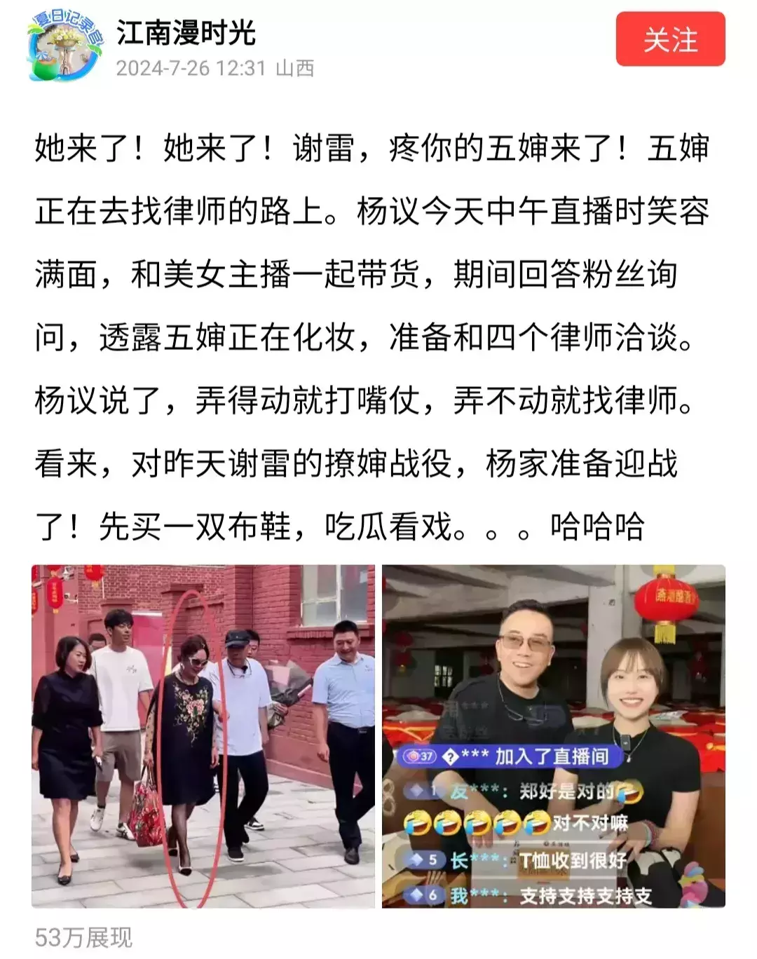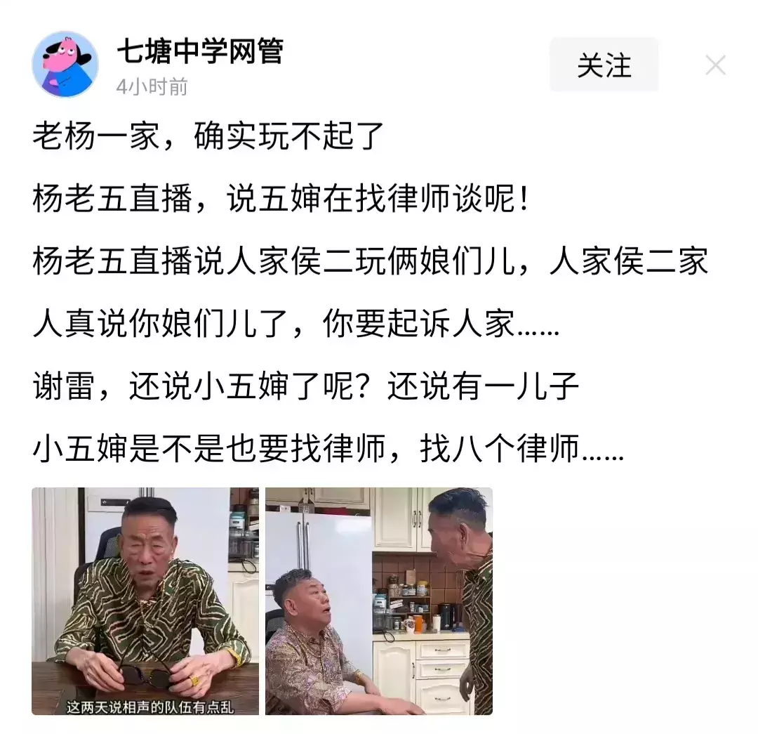 第二,我还想说,杨议此举有点双标可能好多一又友还铭记,在7月17日杨议的那场直播中,也曾说侯耀华“年青的本领,身边有几个女性无所谓,那王人不算事”。然而到了我方头上,却要发兵动众地找讼师。大家说说,这算不算双标?