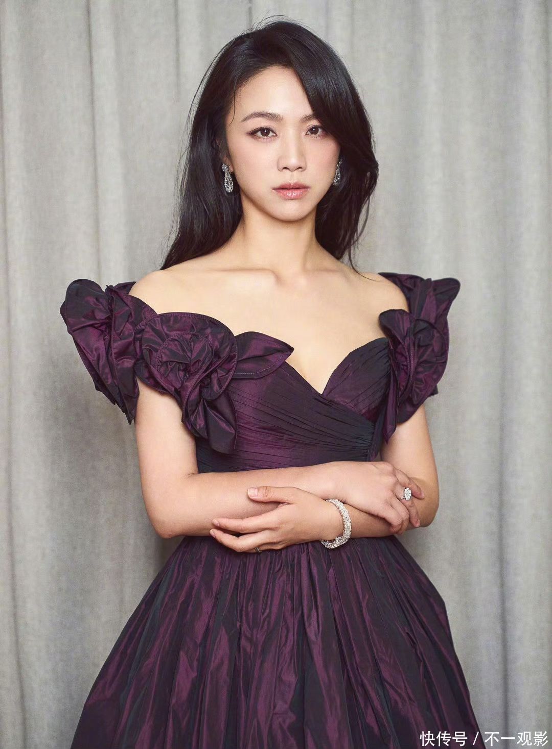 汤唯穿了一条紫色抹胸裙装,整条裙子既莫得过于暴露行状线,也莫得至极强调高低有致的躯壳,反而从现场生图来看,显得汤唯肩宽腰粗,统共东谈主看上去格外清翠。